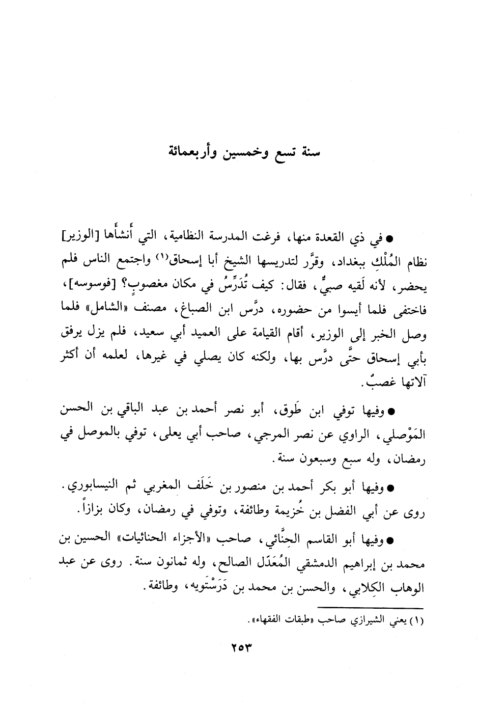 [1] يعني الشيرازي صاحب «طبقات الفقهاء» .