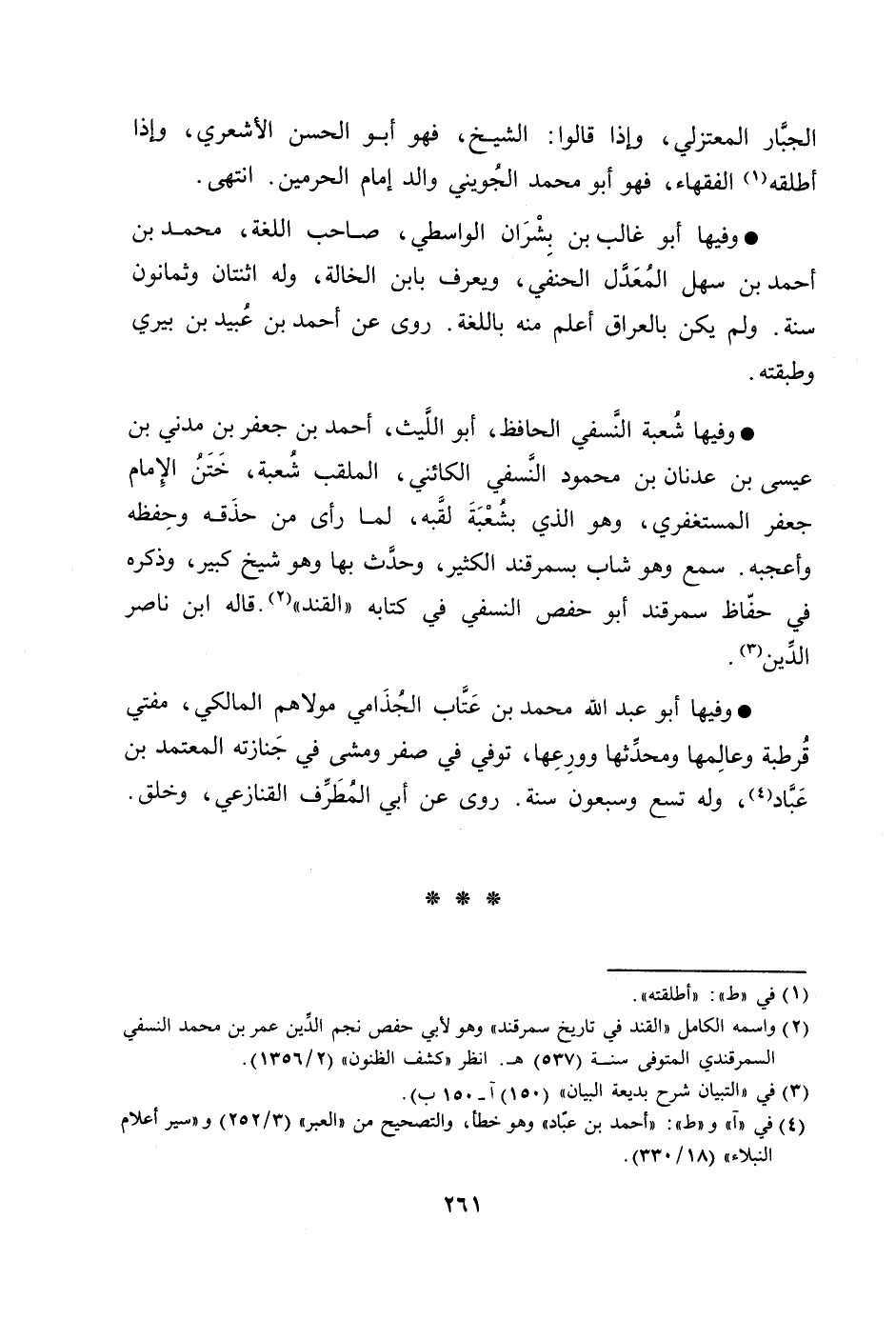 وفيها شعبة النّسفي الحافظ، أبو اللّيث، أحمد بن جعفر بن مدني بن عيسى بن عدنان بن محمود النّسفي الكائني، الملقب شعبة، ختن الإمام جعفر المستغفري، وهو الذي بشعبة لقّبة، لما رأى من حذقه وحفظه وأعجبه. سمع وهو شاب بسمرقند الكثير، وحدّث بها وهو شيخ كبير، وذكره في حفّاظ سمرقند أبو حفص النسفي في كتابه «القند» [2] . قاله ابن ناصر الدّين [3] .