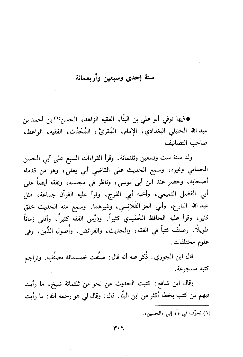 فيها توفي أبو علي بن البنّا، الفقيه الزاهد، الحسن [1] بن أحمد بن عبد الله الحنبلي البغدادي، الإمام، المقرئ، المحدّث، الفقيه، الواعظ، صاحب التصانيف.