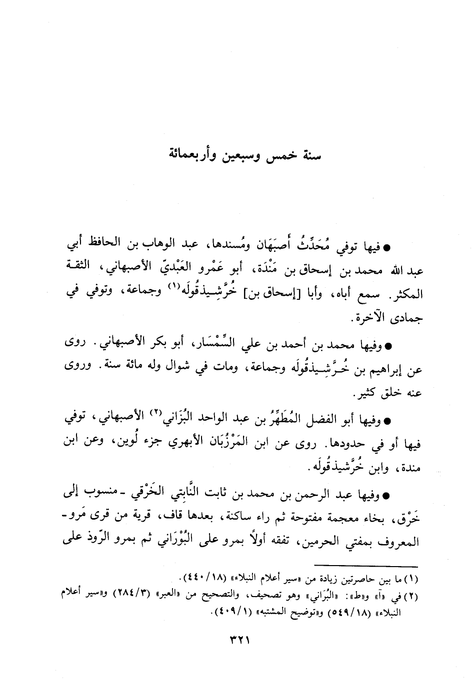 وفيها أبو الفضل المطهّر بن عبد الواحد البزاني [2] الأصبهاني، توفي فيها أو في حدودها. روى عن ابن المرزبان الأبهري جزء لوين، وعن ابن مندة، وابن خرّشيذقوله.