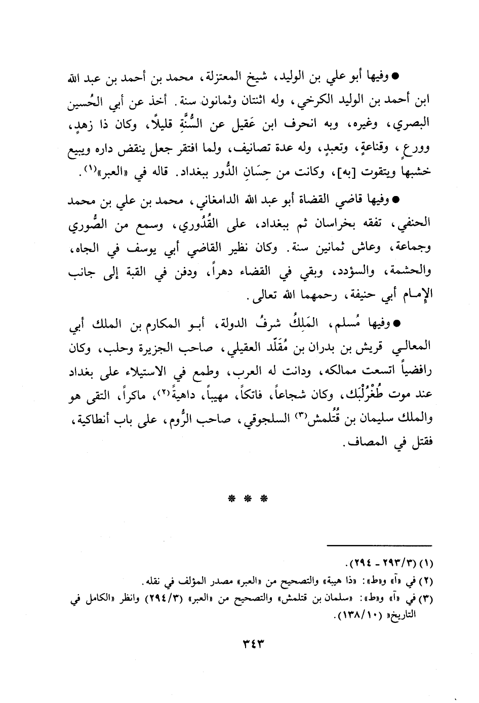 [3] في «آ» و «ط» : «سلمان بن قتلمش» والتصحيح من «العبر» (3/ 294) وانظر «الكامل في التاريخ» (10/ 138) .
