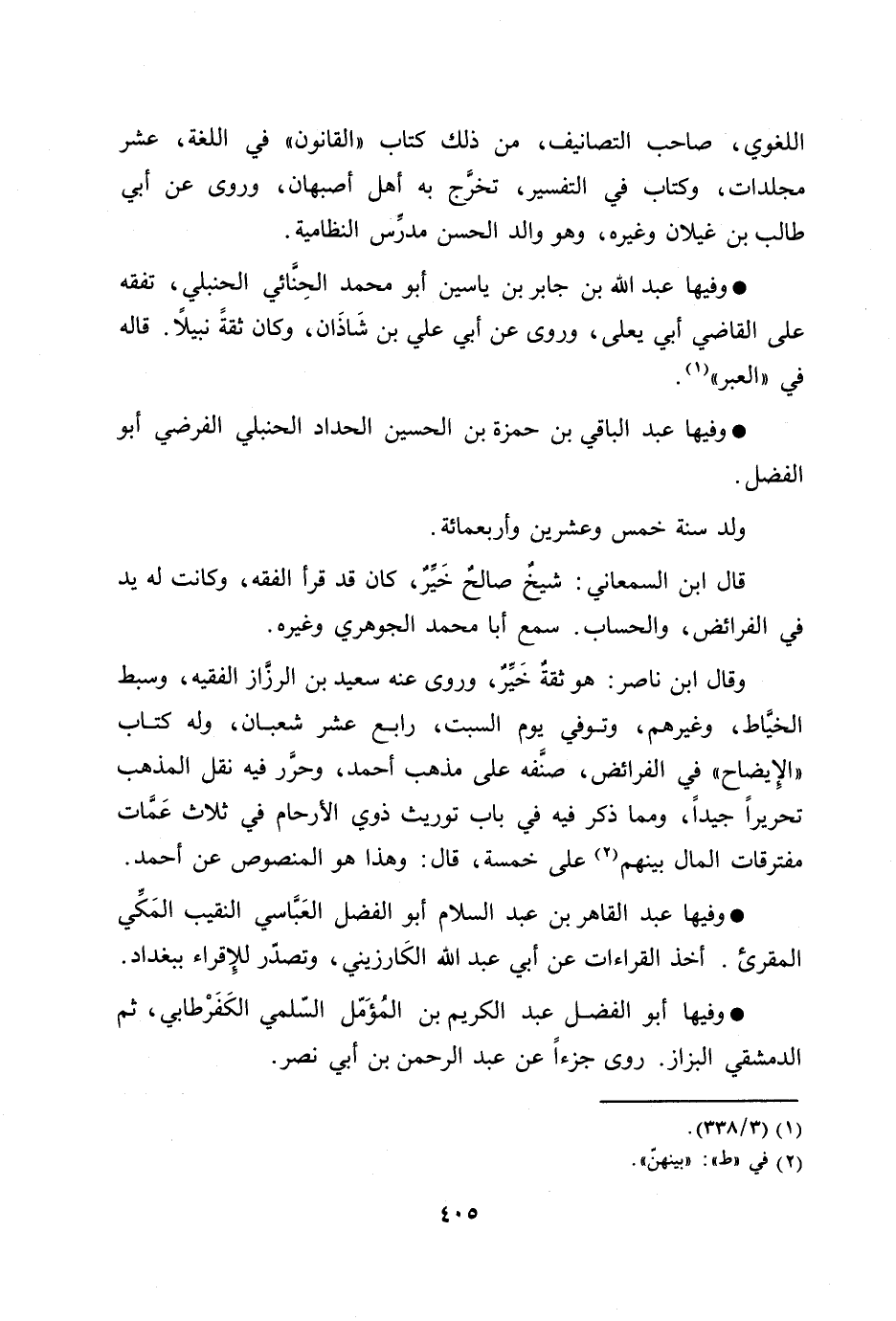 وفيها عبد الله بن جابر بن ياسين أبو محمد الحنّائي الحنبلي، تفقه على القاضي أبي يعلى، وروى عن أبي علي بن شاذان، وكان ثقة نبيلا. قاله في «العبر» [1] .