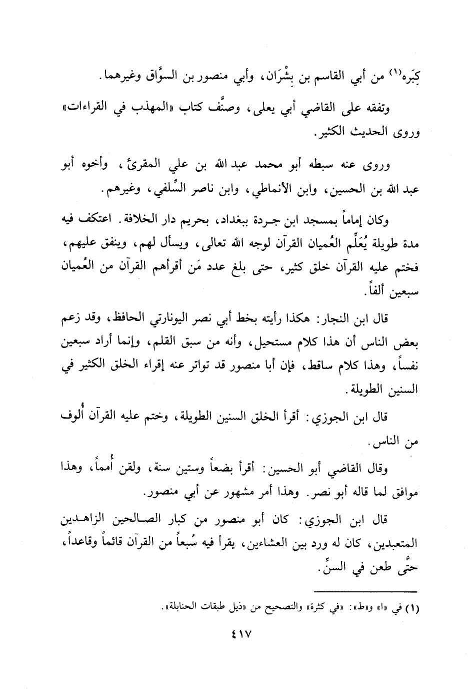[1] في «آ» و «ط» : «في كثرة» والتصحيح من «ذيل طبقات الحنابلة» .