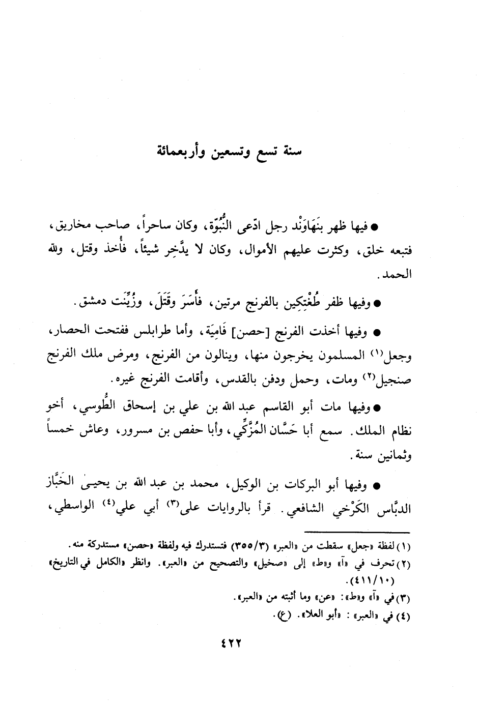 وفيها أبو البركات بن الوكيل، محمد بن عبد الله بن يحيى الخبّاز الدبّاس الكرخي الشافعي. قرأ بالروايات على [3] أبي علي [4] الواسطي،