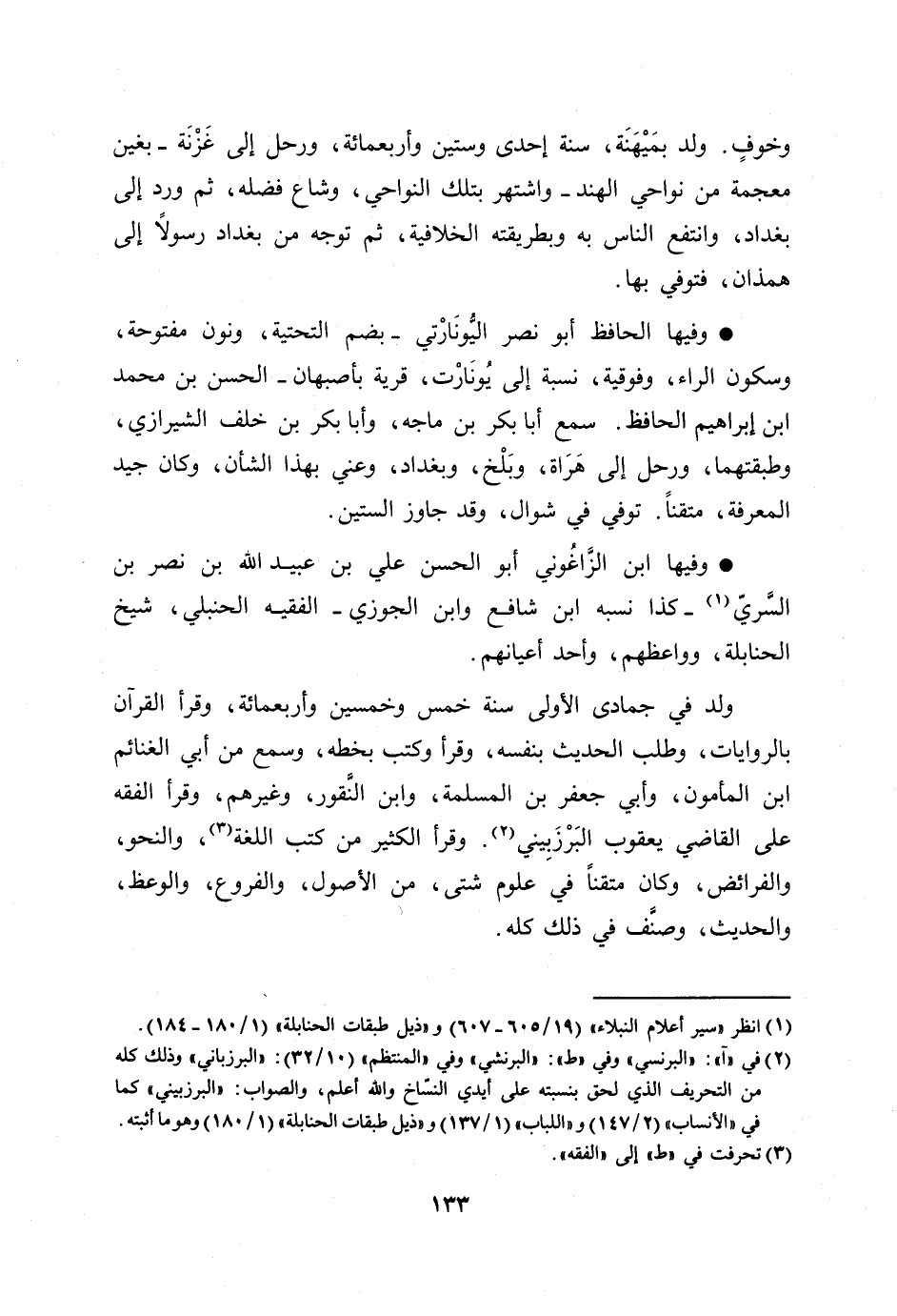 [2] في «آ» : «البرنسي» وفي «ط» : «البرنشي» وفي «المنتظم» (10/ 32) : «البرزباني» وذلك كله من التحريف الذي لحق بنسبته على أيدي النسّاخ والله أعلم، والصواب: «البرزبيني» كما في «الأنساب» (2/ 147) و «اللباب» (1/ 137) و «ذيل طبقات الحنابلة» (1/ 180) وهو ما أثبته.