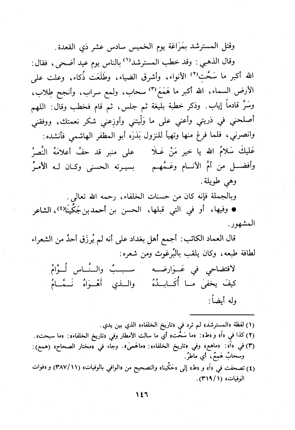 [1] لفظة «المسترشد» لم ترد في «تاريخ الخلفاء» الذي بين يدي.