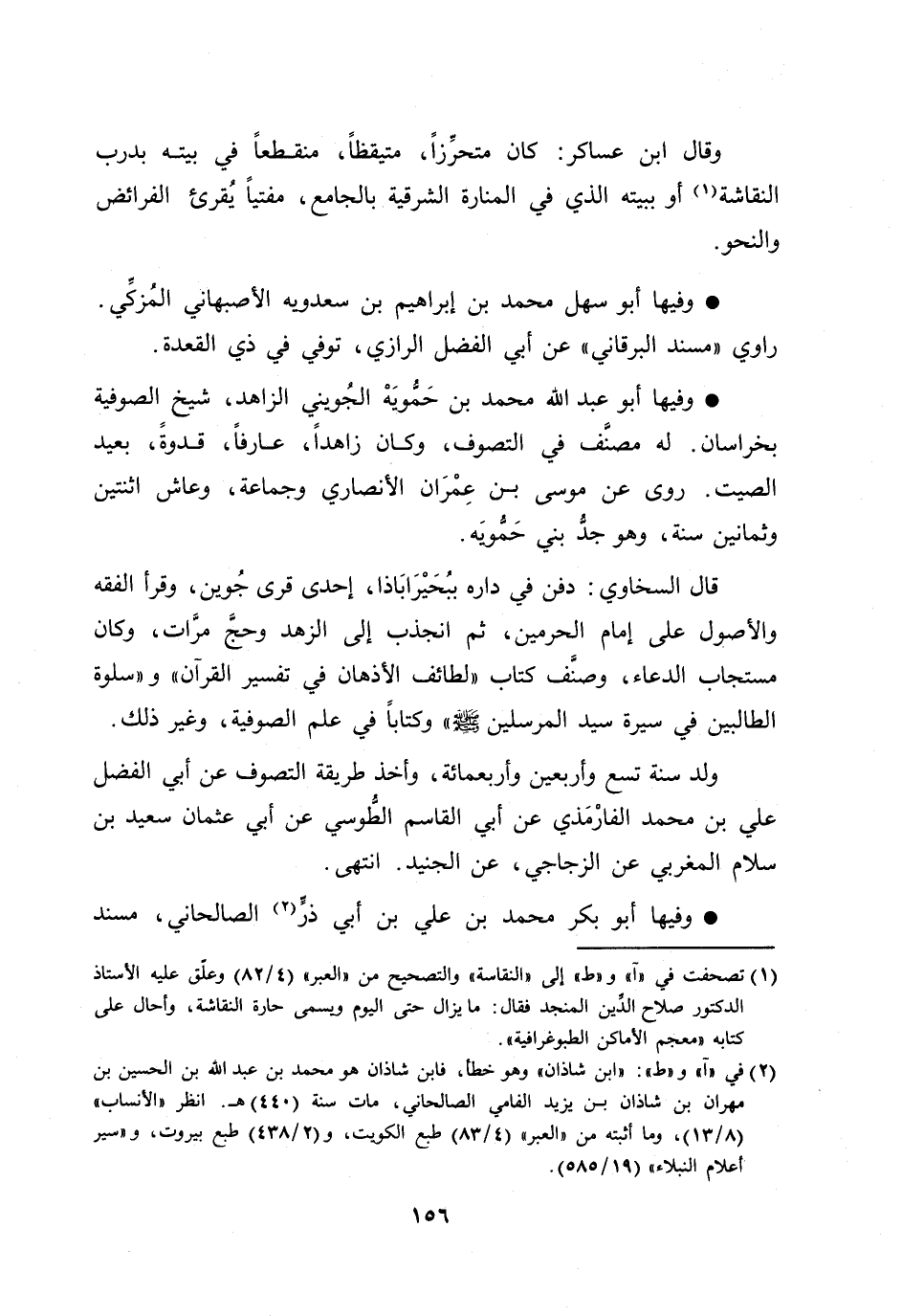[1] تصحفت في «آ» و «ط» إلى «النقاسة» والتصحيح من «العبر» (4/ 82) وعلّق عليه الأستاذ الدكتور صلاح الدّين المنجد فقال: ما يزال حتى اليوم ويسمى حارة النقاشة، وأحال على كتابه «معجم الأماكن الطبوغرافية» .