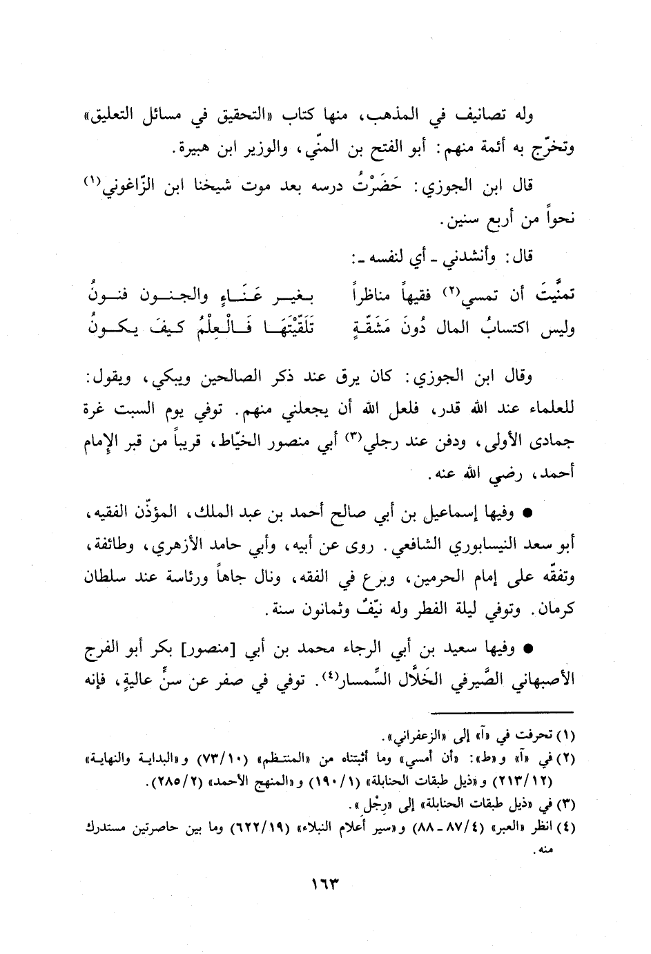 [2] في «آ» و «ط» : «أن أمسي» وما أثبتناه من «المنتظم» (10/ 73) و «البداية والنهاية» (12/ 213) و «ذيل طبقات الحنابلة» (1/ 190) و «المنهج الأحمد» (2/ 285) .