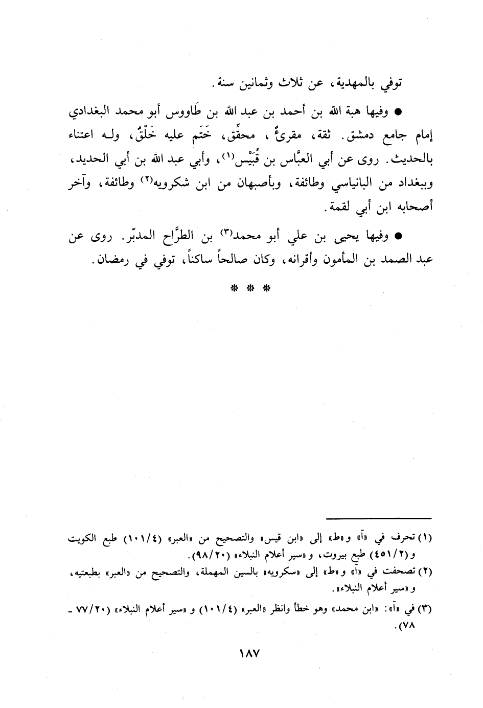 [3] في «آ» : «ابن محمد» وهو خطأ وانظر «العبر» (4/ 101) و «سير أعلام النبلاء» (20/ 77- 78) .