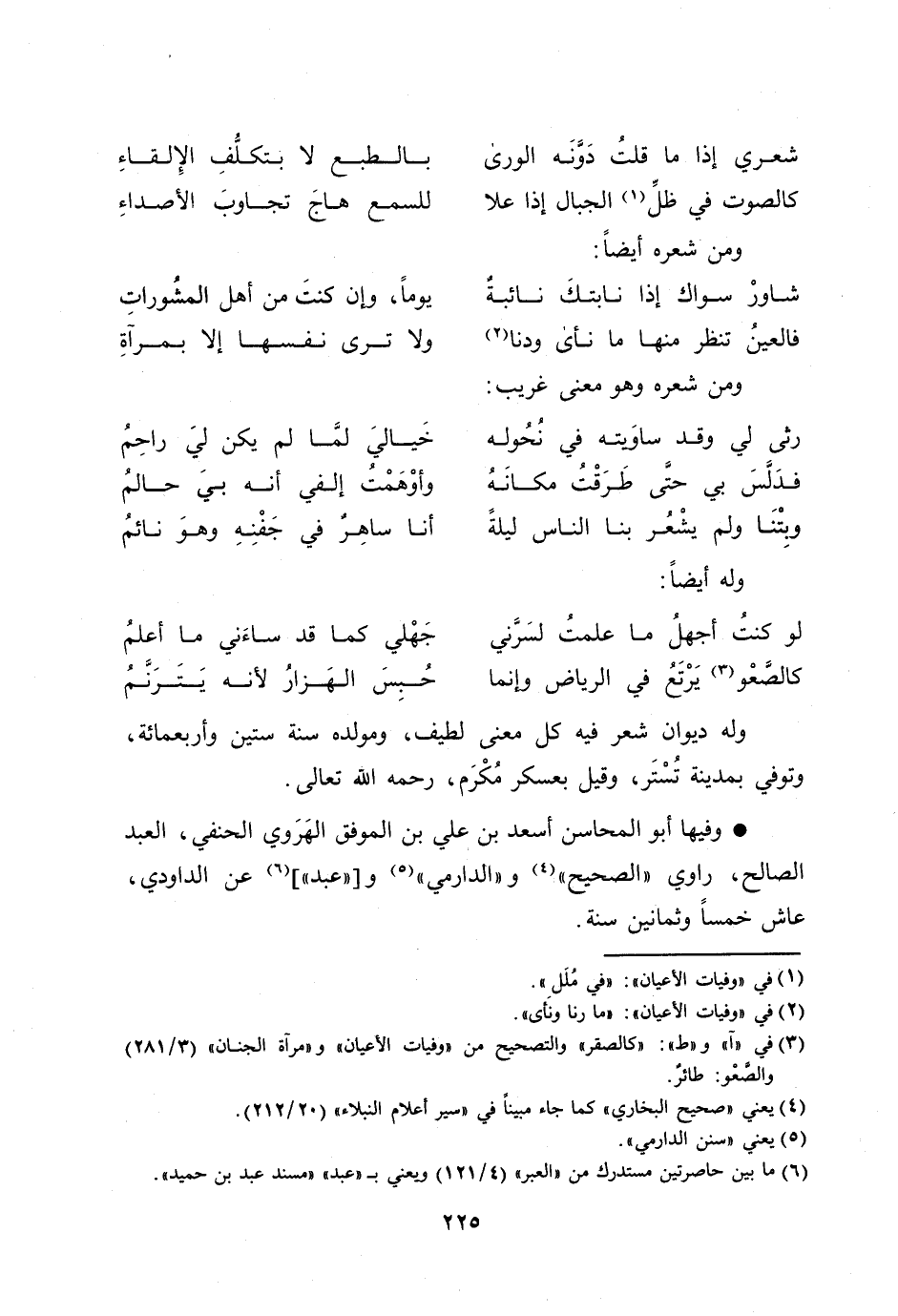 وفيها أبو المحاسن أسعد بن علي بن الموفق الهروي الحنفي، العبد الصالح، راوي «الصحيح» [4] و «الدارمي» [5] و [ «عبد» ] [6] عن الداودي، عاش خمسا وثمانين سنة.