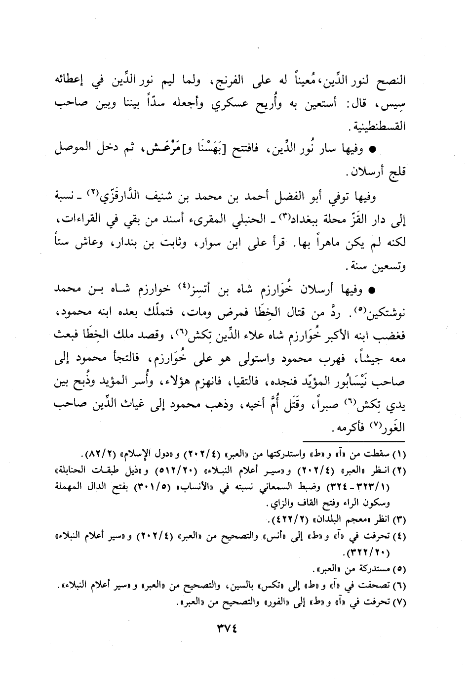 [6] تصحفت في «آ» و «ط» إلى «تكس» بالسين، والتصحيح من «العبر» و «سير أعلام النبلاء» .