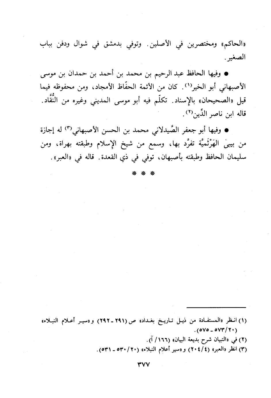 وفيها الحافظ عبد الرحيم بن محمد بن أحمد بن حمدان بن موسى الأصبهاني أبو الخير [1] . كان من الأئمة الحفّاظ الأمجاد، ومن محفوظه فيما قيل «الصحيحان» بالإسناد. تكلّم فيه أبو موسى المديني وغيره من النّقّاد.