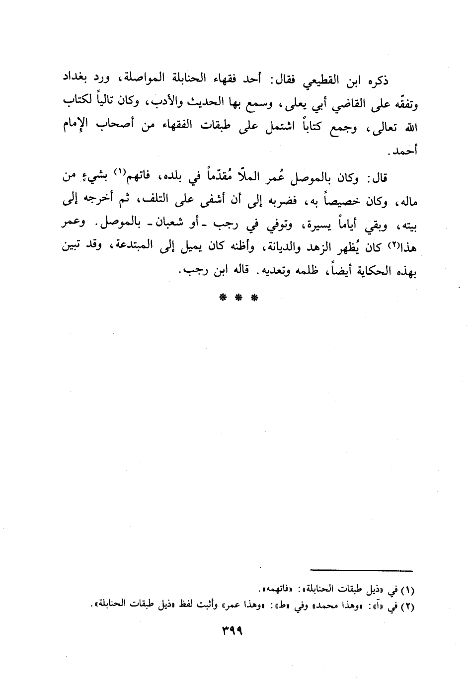 [2] في «آ» : «وهذا محمد» وفي «ط» : «وهذا عمر» وأثبت لفظ «ذيل طبقات الحنابلة» .
