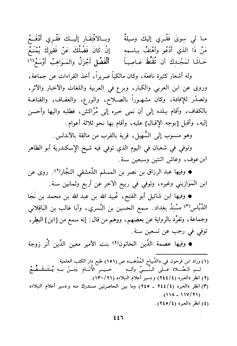 [3] انظر «العبر» (4/ 244- 245) وما بين الحاصرتين مستدرك منه و «سير أعلام النبلاء» (21/ 117- 118) .