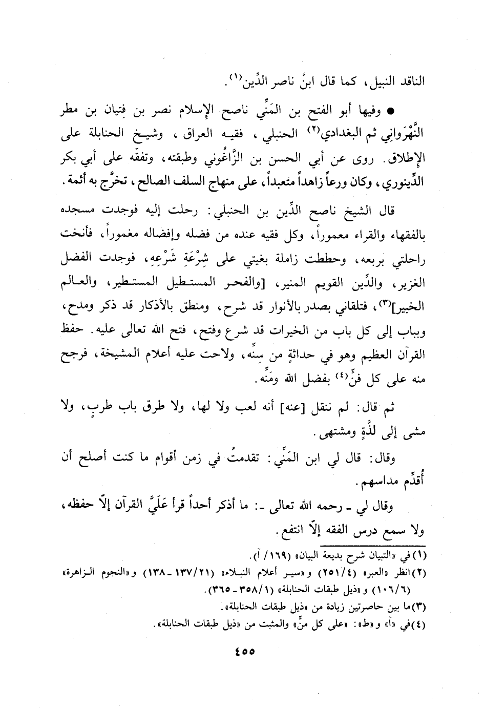 [2] انظر «العبر» (4/ 251) و «سير أعلام النبلاء» (21/ 137- 138) و «النجوم الزاهرة» (6/ 106) و «ذيل طبقات الحنابلة» (1/ 358- 365) .