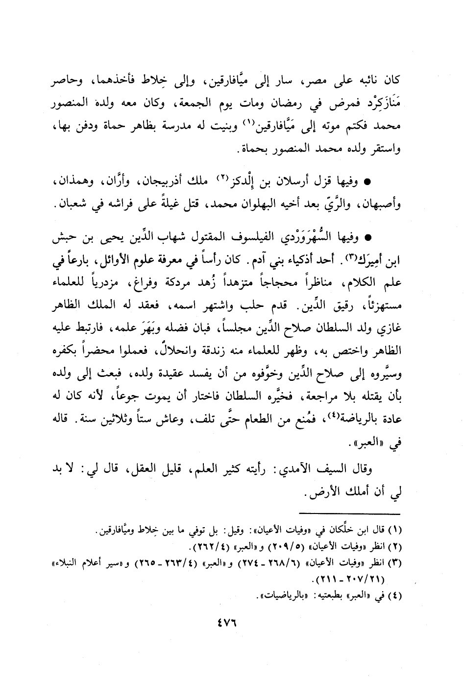 [3] انظر «وفيات الأعيان» (6/ 268- 274) و «العبر» (4/ 263- 265) و «سير أعلام النبلاء» (21/ 207- 211) .