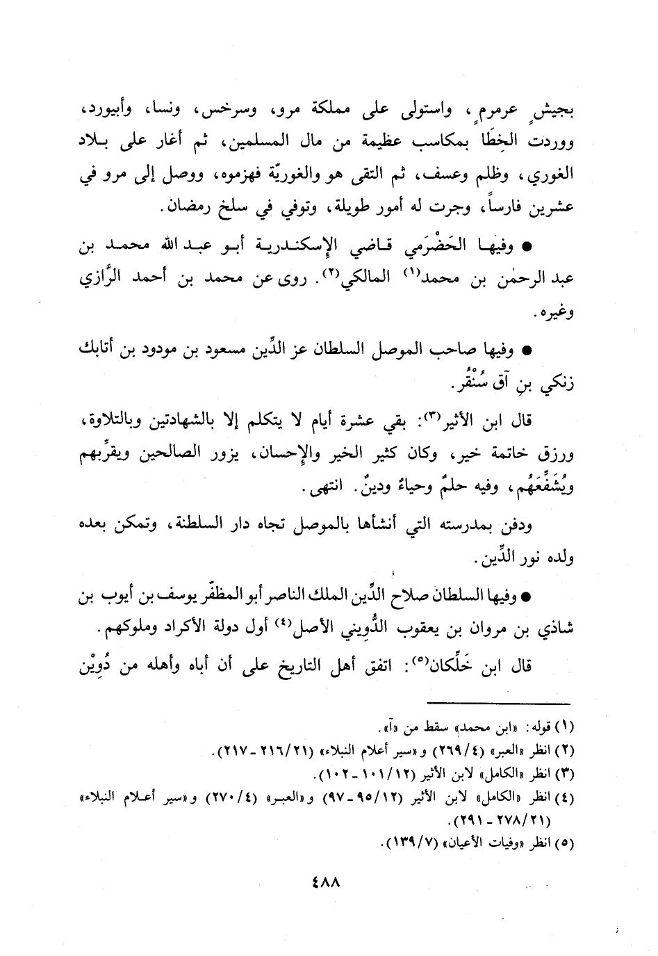 [4] انظر «الكامل» لابن الأثير (12/ 95- 97) و «العبر» (4/ 270) و «سير أعلام النبلاء» (21/ 278- 291) .