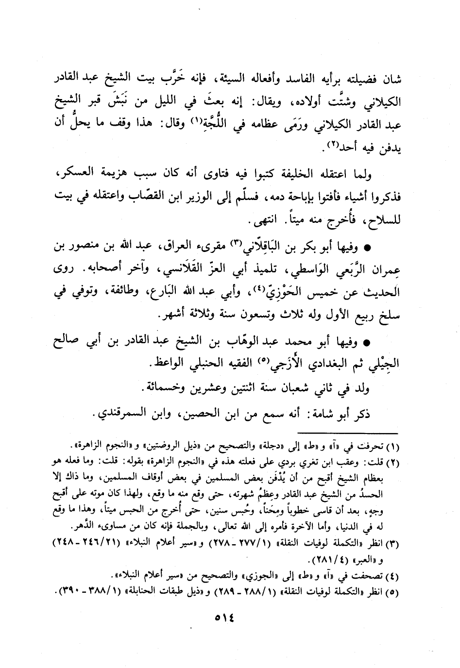 [5] انظر «التكملة لوفيات النقلة» (1/ 288- 289) و «ذيل طبقات الحنابلة» (1/ 388- 390) .