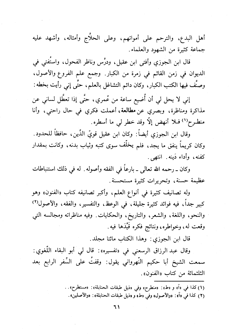 [2] كذا في «آ» : «والأصول» وفي «ط» و «ذيل طبقات الحنابلة» : «والأصلين» .