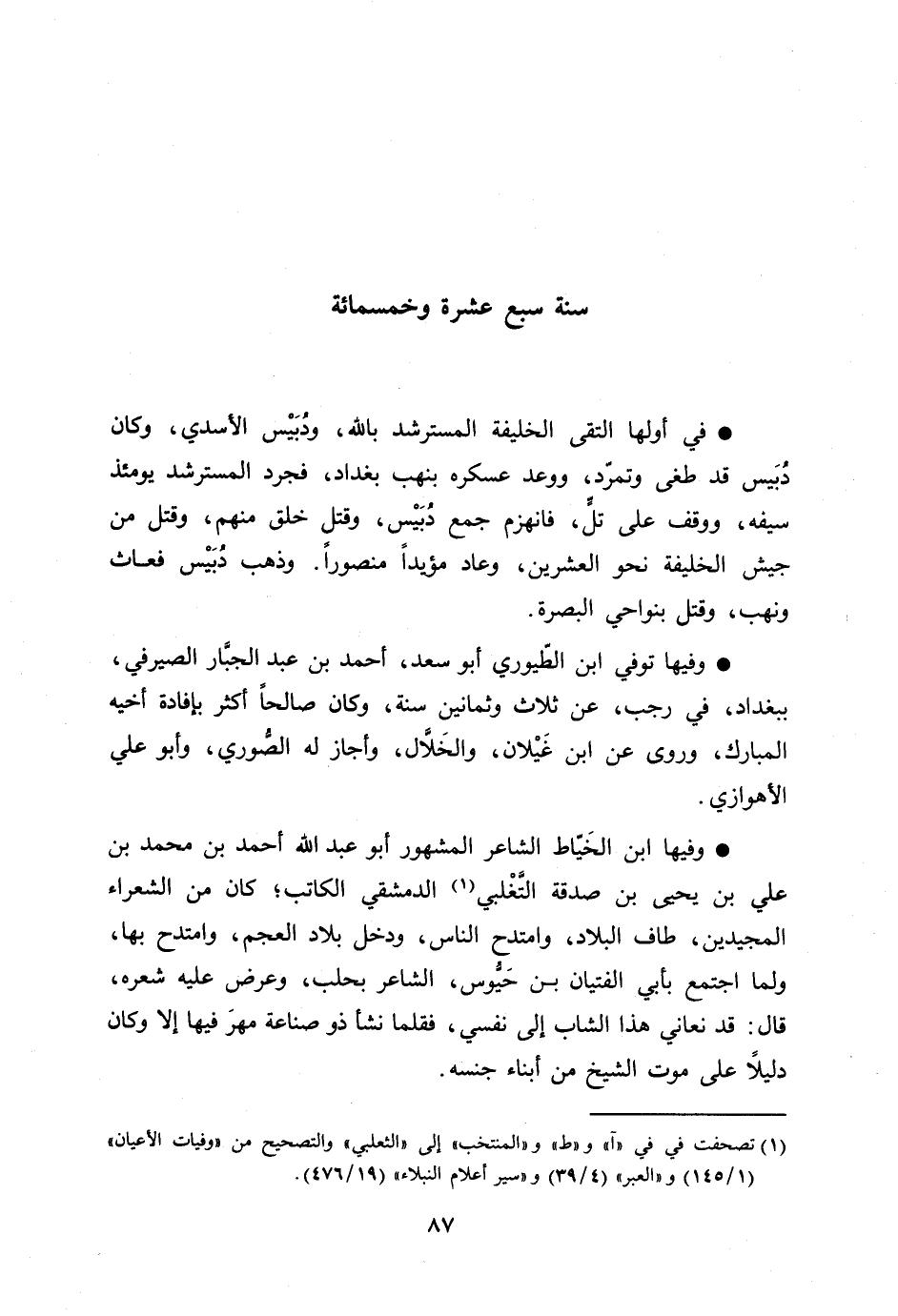 [1] تصحفت في في «آ» و «ط» و «المنتخب» إلى «الثعلبي» والتصحيح من «وفيات الأعيان» (1/ 145) و «العبر» (4/ 39) و «سير أعلام النبلاء» (19/ 476) .