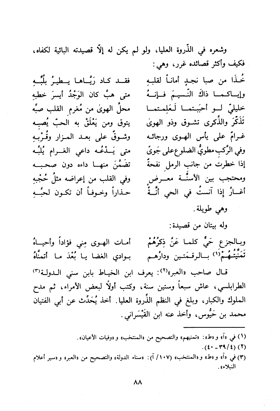 [3] في «آ» و «ط» و «المنتخب» (107/ آ) : «سناء الدولة» والتصحيح من «العبر» و «سير أعلام النبلاء» .