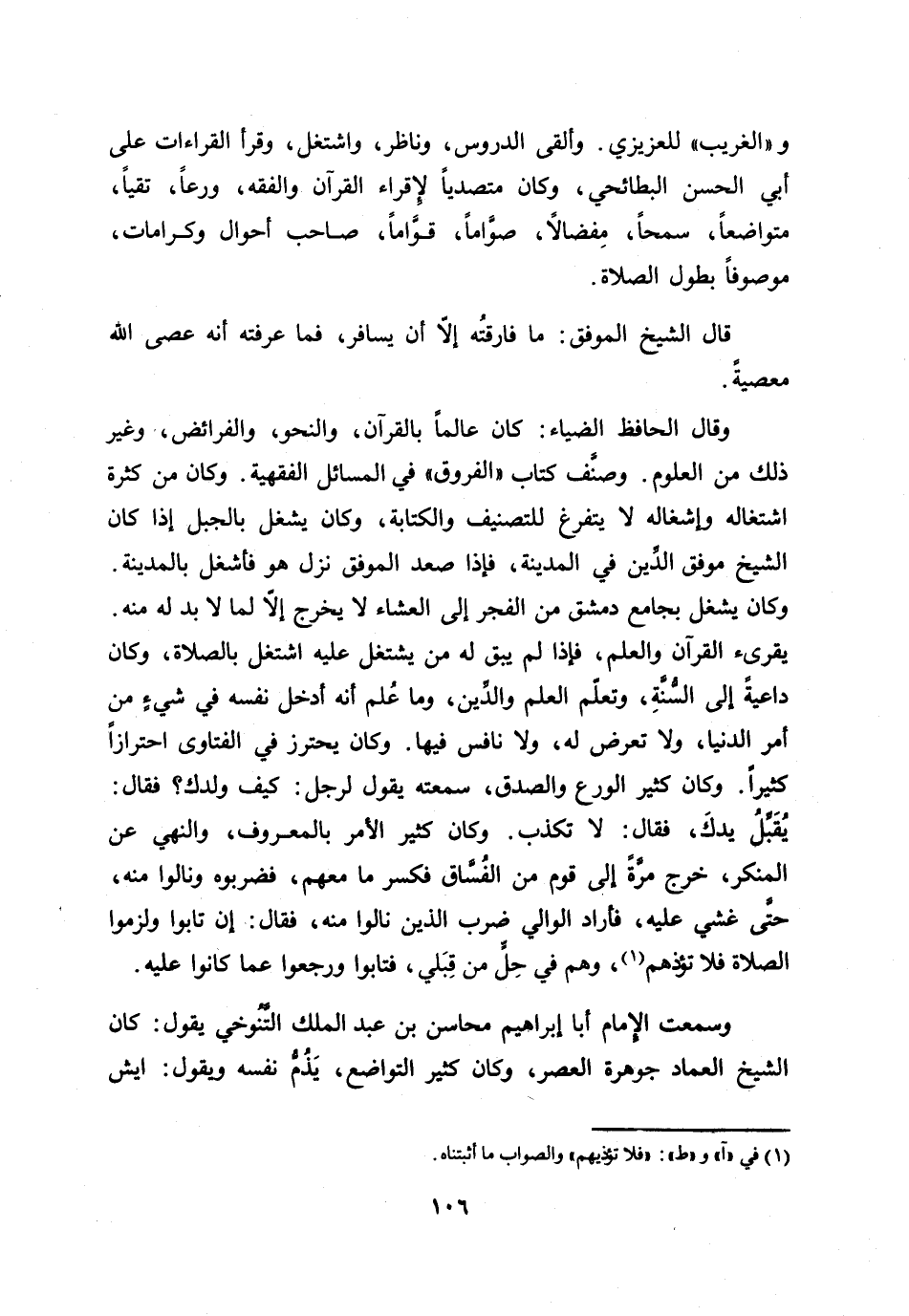قال الشيخ الموفق: ما فارقته إلّا أن يسافر، فما عرفته أنه عصى الله معصية.