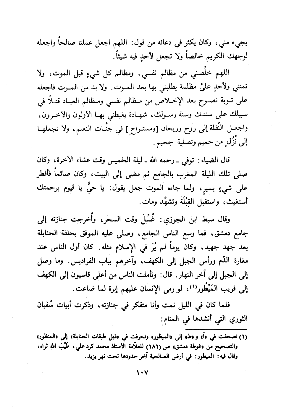 [1] تصحفت في «آ» و «ط» إلى «الميظور» وتحرفت في «ذيل طبقات الحنابلة» إلى «المنظور» والتصحيح من «غوطة دمشق» ص (181) للعلّامة الأستاذ محمد كرد علي، طيّب الله ثراه، وقال فيه: الميطور: في أرض الصالحية آخر حدودها تحت نهر يزيد.