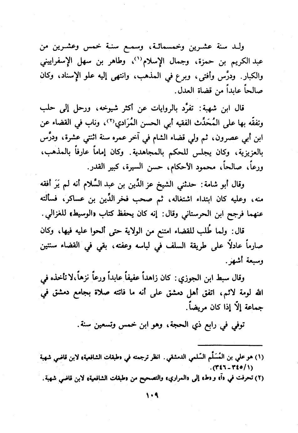 [1] هو علي بن المسلّم السّلمي الدمشقي. انظر ترجمته في «طبقات الشافعية» لابن قاضي شهبة (1/ 345- 346) .