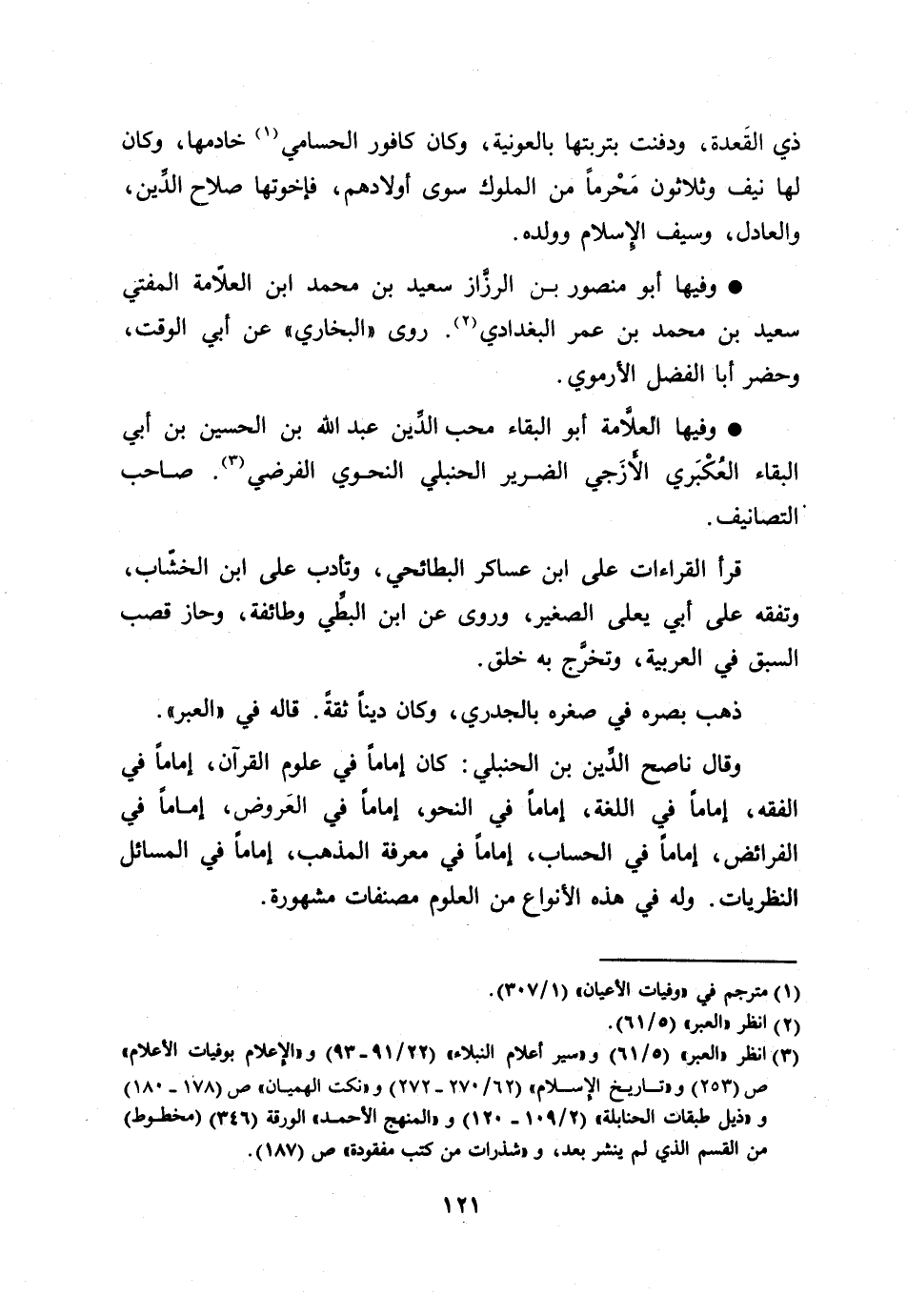 [3] انظر «العبر» (5/ 61) و «سير أعلام النبلاء» (22/ 91- 93) و «الإعلام بوفيات الأعلام» ص (253) و «تاريخ الإسلام» (62/ 270- 272) و «نكت الهميان» ص (178- 180) و «ذيل طبقات الحنابلة» (2/ 109- 120) و «المنهج الأحمد» الورقة (346) (مخطوط) من القسم الذي لم ينشر بعد، و «شذرات من كتب مفقودة» ص (187) .