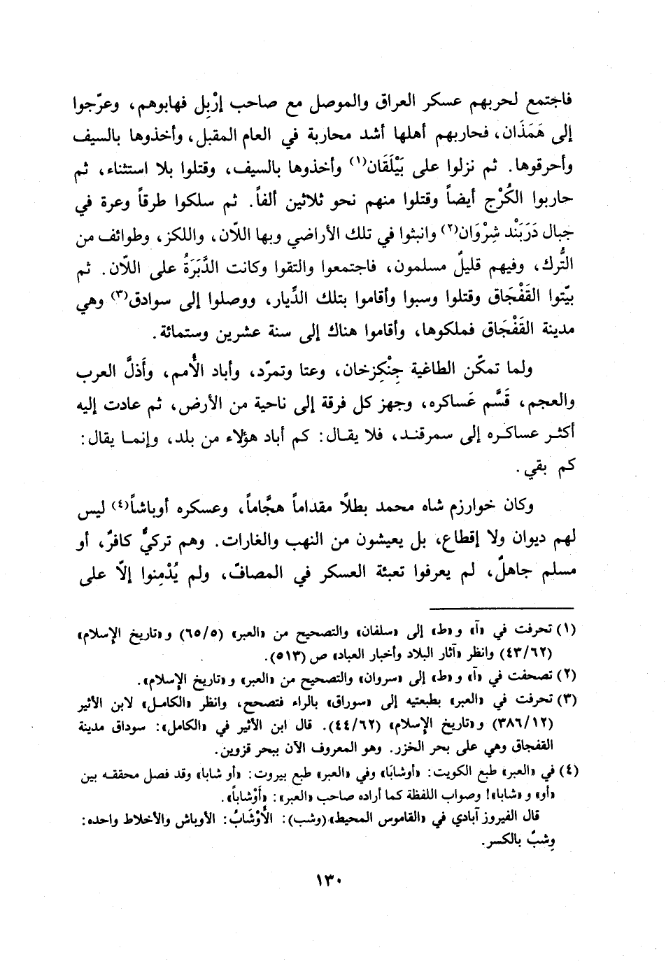 [3] تحرفت في «العبر» بطبعتيه إلى «سوراق» بالراء فتصحح، وانظر «الكامل» لابن الأثير (12/ 386) و «تاريخ الإسلام» (62/ 44) . قال ابن الأثير في «الكامل» : سوداق مدينة القفجاق وهي على بحر الخزر. وهو المعروف الآن ببحر قزوين.