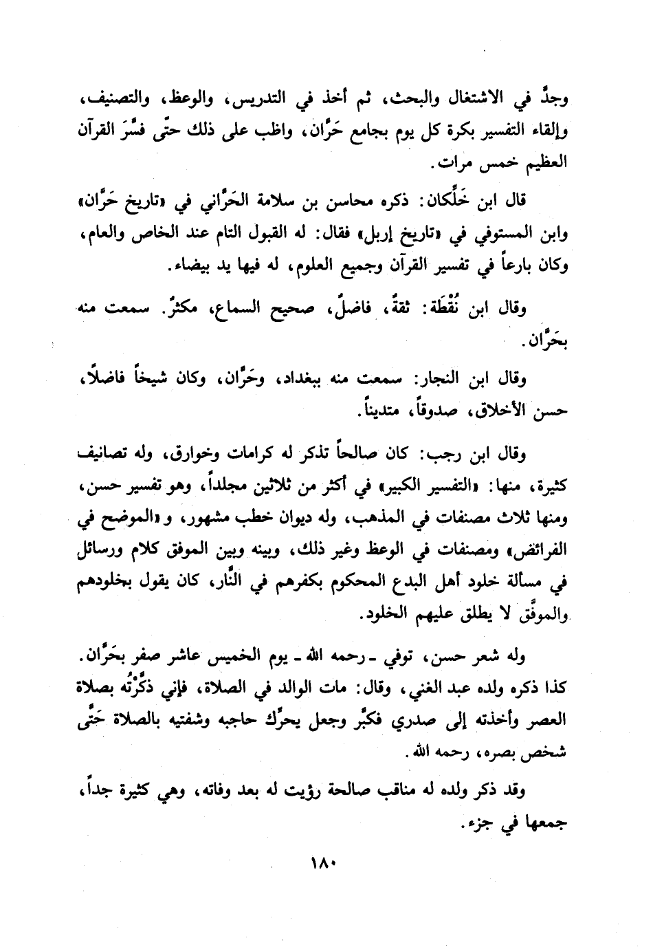 وقال ابن النجار: سمعت منه ببغداد، وحرّان، وكان شيخا فاضلا، حسن الأخلاق، صدوقا، متدينا.