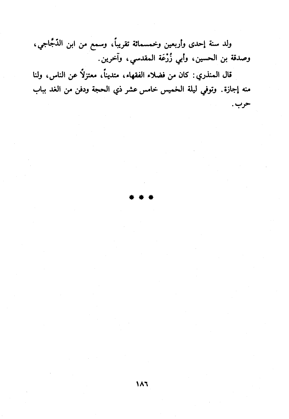 قال المنذري: كان من فضلاء الفقهاء، متدينا، معتزلا عن الناس، ولنا منه إجازة. وتوفي ليلة الخميس خامس عشر ذي الحجة ودفن من الغد بباب حرب