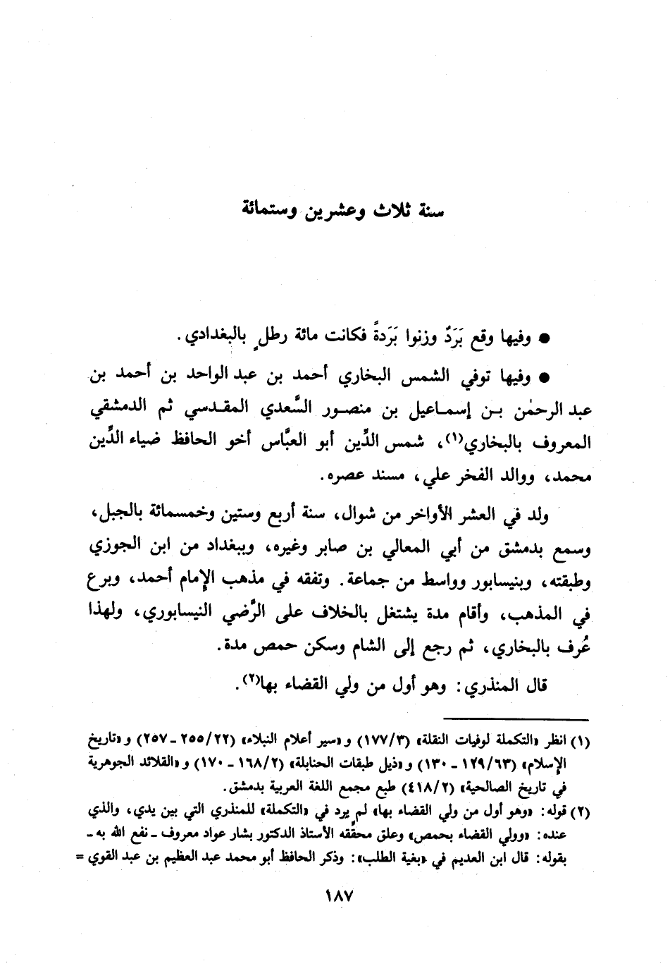 [1] انظر «التكملة لوفيات النقلة» (3/ 177) و «سير أعلام النبلاء» (22/ 255- 257) و «تاريخ الإسلام» (63/ 129- 130) و «ذيل طبقات الحنابلة» (2/ 168- 170) و «القلائد الجوهرية في تاريخ الصالحية» (2/ 418) طبع مجمع اللغة العربية بدمشق.