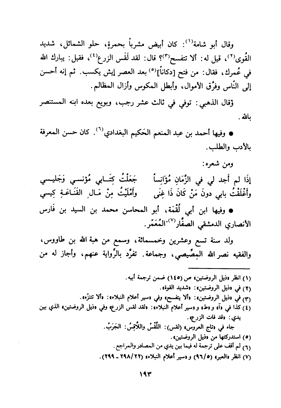 وفيها أحمد بن عبد المنعم الحكيم البغدادي [6] . كان حسن المعرفة بالأدب والطلب.