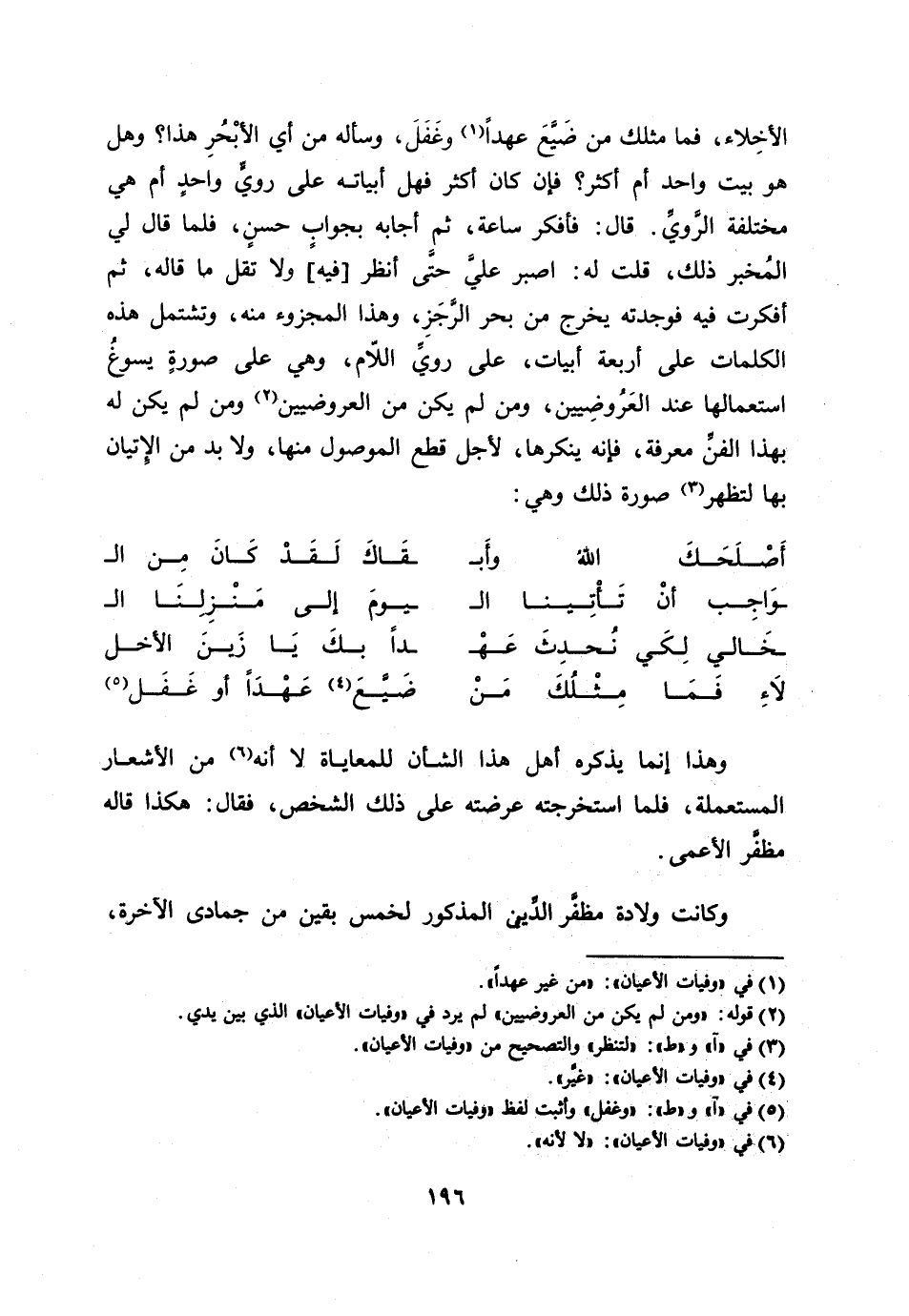 [2] قوله: «ومن لم يكن من العروضيين» لم يرد في «وفيات الأعيان» الذي بين يدي.