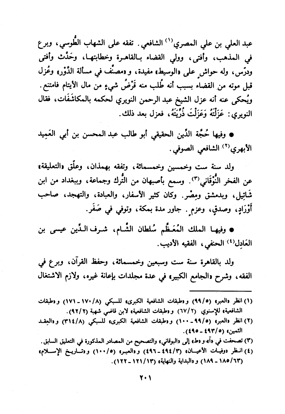 [1] انظر «العبر» (5/ 99) و «طبقات الشافعية الكبرى» للسبكي (8/ 170- 171) و «طبقات الشافعية» للإسنوي (2/ 67) و «طبقات الشافعية» لابن قاضي شهبة (2/ 92) .