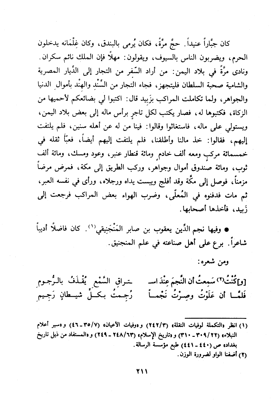 وفيها نجم الدّين يعقوب بن صابر المنجنيقي [1] . كان فاضلا أديبا شاعرا. برع على أهل صناعته في علم المنجنيق.
