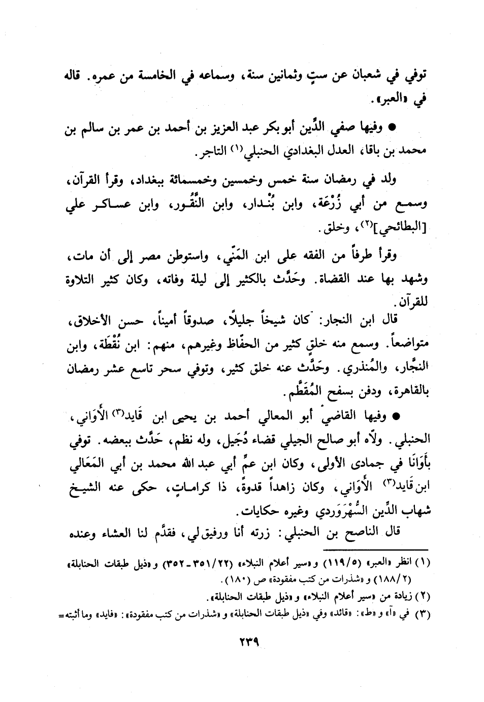 [1] انظر «العبر» (5/ 119) و «سير أعلام النبلاء» (22/ 351- 352) و «ذيل طبقات الحنابلة» (2/ 188) و «شذرات من كتب مفقودة» ص (180) .