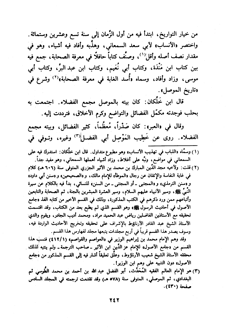 [2] قلت: ولأخيه مجد الدّين المبارك بن محمد بن الأثير الجزري المتوفى سنة (606 هـ) كلام في غاية النفاسة والإتقان عن رجال «الموطأ» للإمام مالك، و «الصحيحين» و «سنن أبي داود» و «سنن الترمذي» و «المجتبى- أو المجتنى- من السنن» للنسائي، بدأ فيه بالكلام عن سيرة النّبيّ صلى الله عليه وسلّم، وسير الأنبياء عليهم السلام، وسير العشرة المبشرين بالجنة، ثم الصحابة والتابعين وأتباعهم ممن ورد ذكرهم في الكتب المذكورة، وذلك في القسم الأخير من كتابه الفذ «جامع الأصول في أحاديث الرسول صلى الله عليه وسلّم» وهو القسم الذي لم يطبع بعد من الكتاب، وقد اقتسمت تحقيقه مع الأستاذين الفاضلين رياض عبد الحميد مراد، ومحمد أديب الجادر، ويقوم والدي الأستاذ الشيخ عبد القادر الأرناؤوط بالإشراف على تحقيقه وتخريج الأحاديث الواردة فيه، وسوف يصدر هذا القسم قريبا في أربع مجلدات يتبعها مجلد لفهارس هذا القسم.