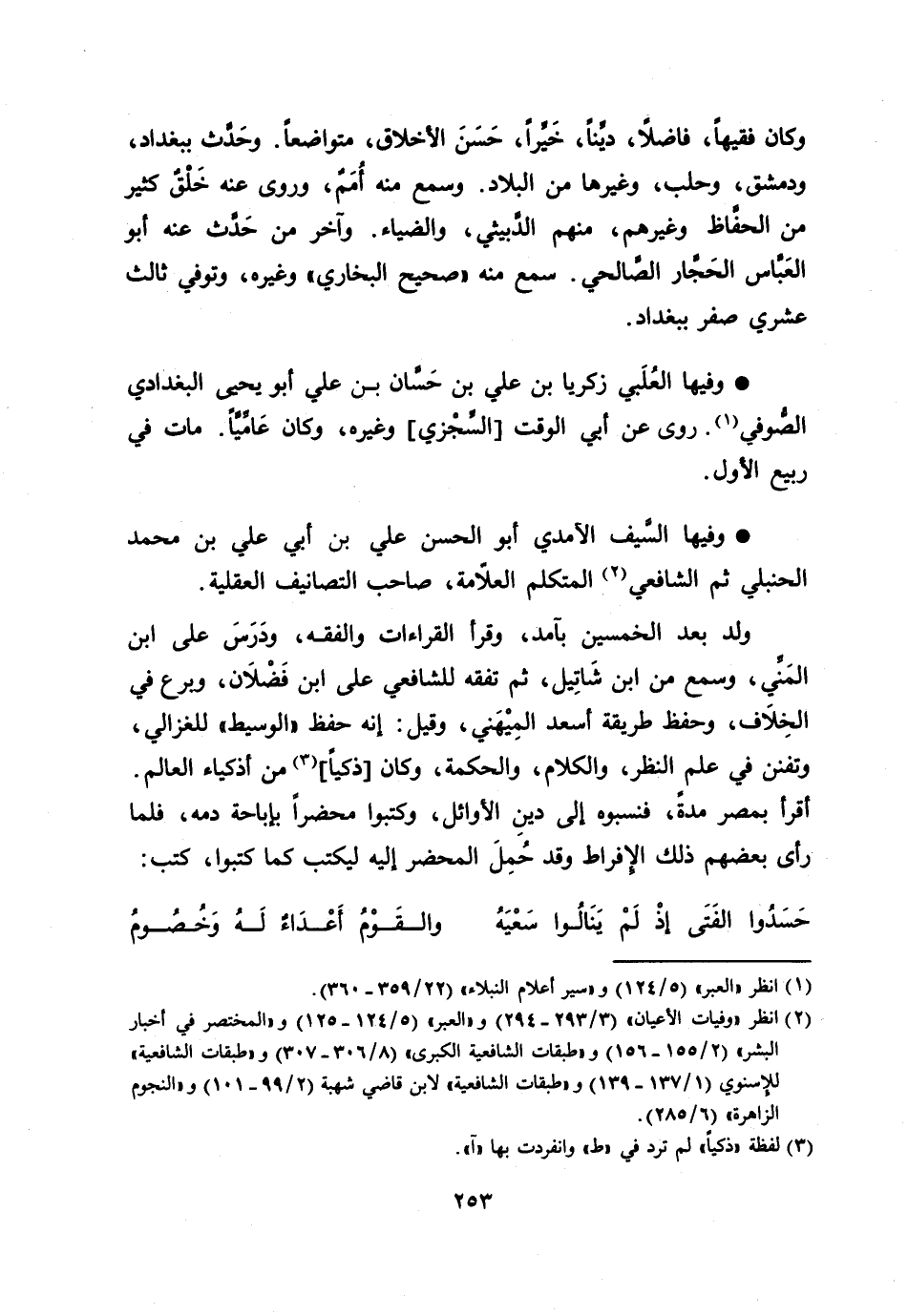 وفيها السّيف الآمدي أبو الحسن علي بن أبي علي بن محمد الحنبلي ثم الشافعي [2] المتكلم العلّامة، صاحب التصانيف العقلية.
