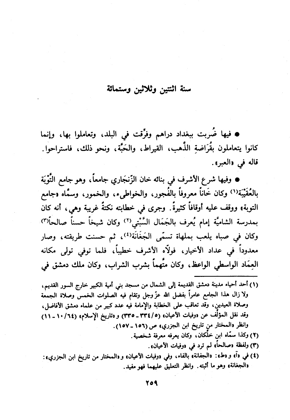 فيها ضربت ببغداد دراهم وفرّقت في البلد، وتعاملوا بها، وإنما كانوا يتعاملون بقراضة الذّهب، القيراط، والحبّة، ونحو ذلك، فاستراحوا.