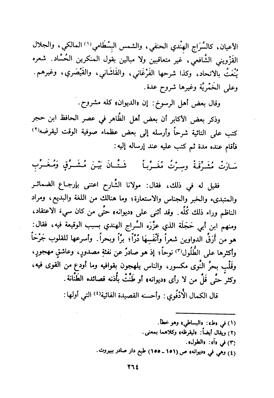 الأعيان، كالسّراج الهندي الحنفي، والشمس البسطامي [1] المالكي، والجلال القزويني الشّافعي، غير متعاقبين ولا مبالين بقول المنكرين الحسّاد. شعره ينعت بالاتحاد، وكذا شرحها الفرغاني، والقاشاني، والقيصري، وغيرهم.