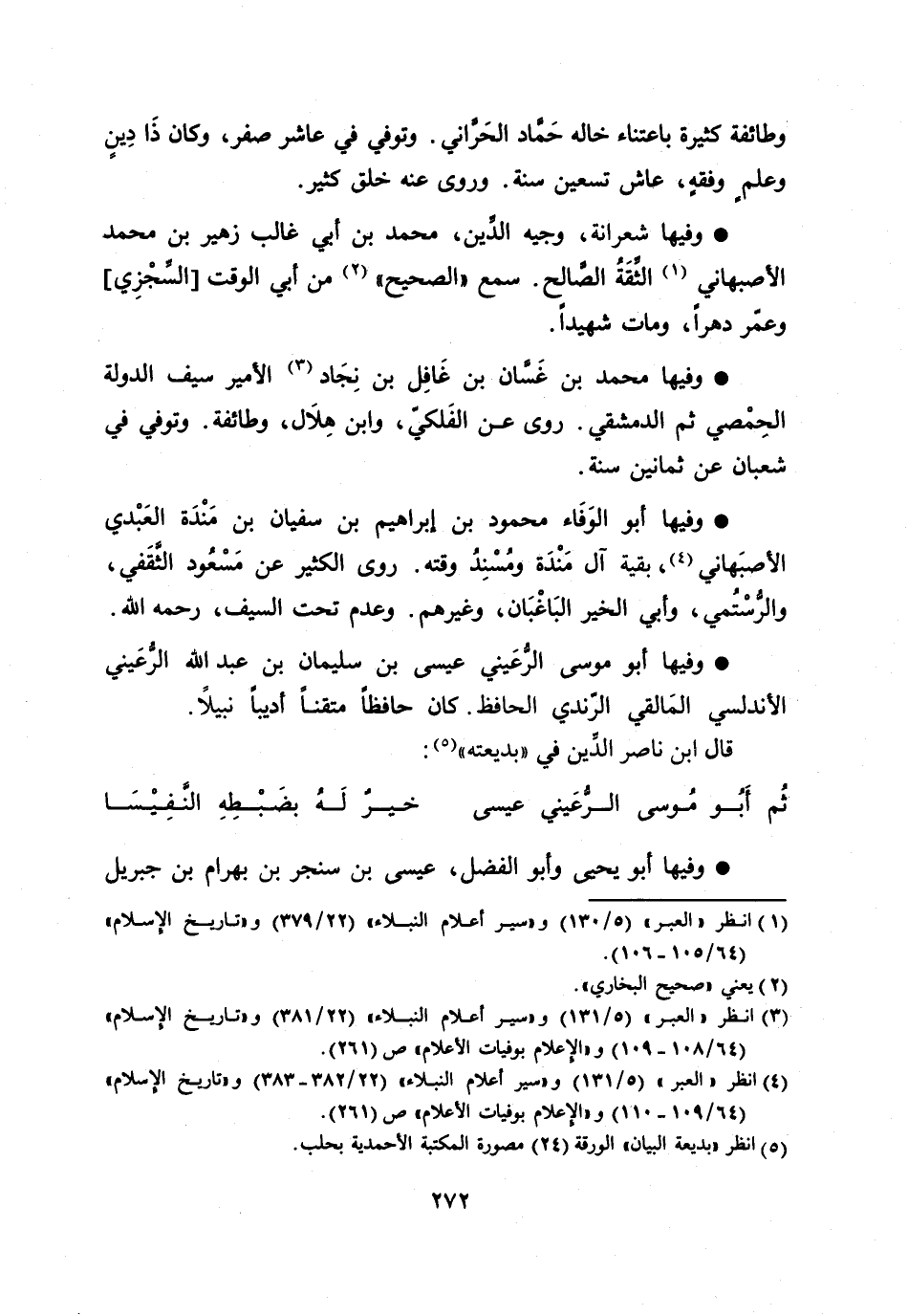 [3] انظر «العبر» (5/ 131) و «سير أعلام النبلاء» (22/ 381) و «تاريخ الإسلام» (64/ 108- 109) و «الإعلام بوفيات الأعلام» ص (261) .