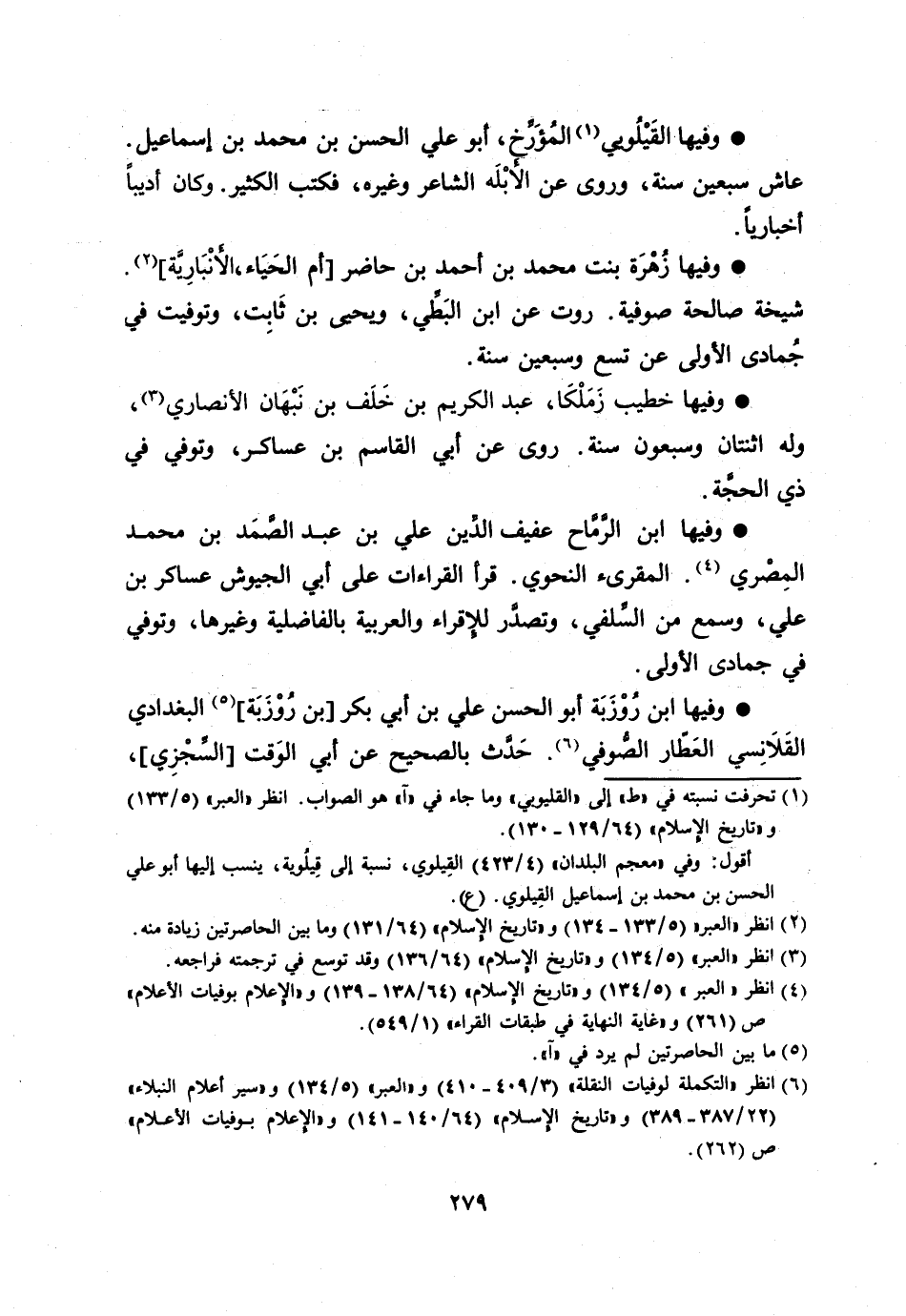 [6] انظر «التكملة لوفيات النقلة» (3/ 409- 410) و «العبر» (5/ 134) و «سير أعلام النبلاء» (22/ 387- 389) و «تاريخ الإسلام» (64/ 140- 141) و «الإعلام بوفيات الأعلام» ص (262) .
