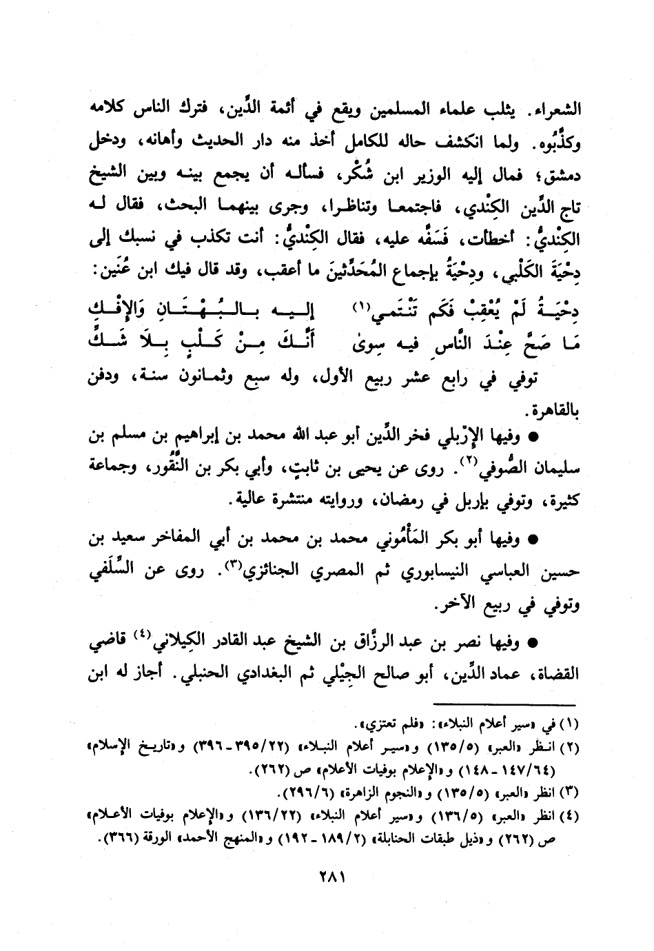 [4] انظر «العبر» (5/ 136) و «سير أعلام النبلاء» (22/ 136) و «الإعلام بوفيات الأعلام» ص (262) و «ذيل طبقات الحنابلة» (2/ 189- 192) و «المنهج الأحمد» الورقة (366) .