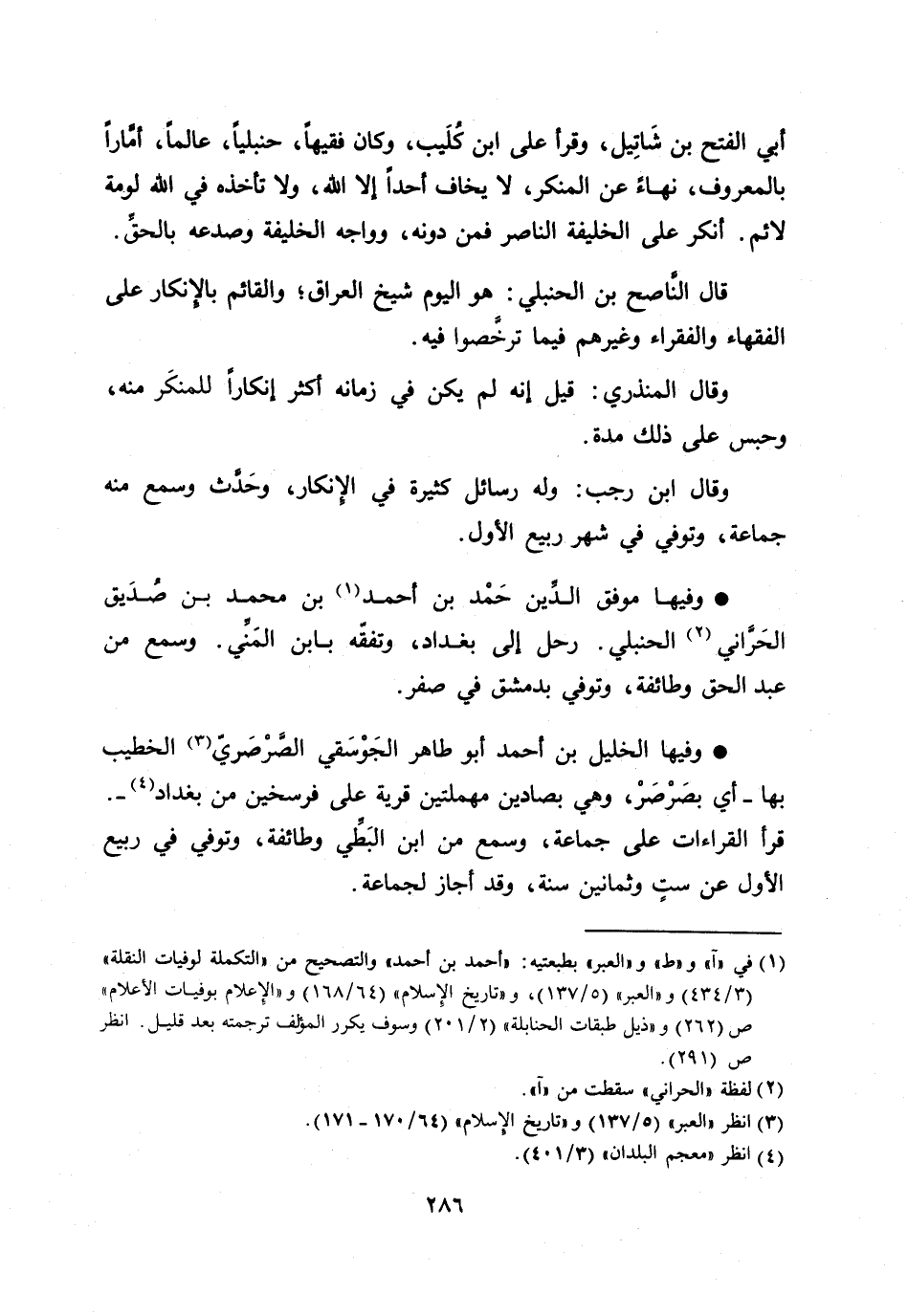 [1] في «آ» و «ط» و «العبر» بطبعتيه: «أحمد بن أحمد» والتصحيح من «التكملة لوفيات النقلة» (3/ 434) و «العبر» (5/ 137) ، و «تاريخ الإسلام» (64/ 168) و «الإعلام بوفيات الأعلام» ص (262) و «ذيل طبقات الحنابلة» (2/ 201) وسوف يكرر المؤلف ترجمته بعد قليل. انظر ص (291) .