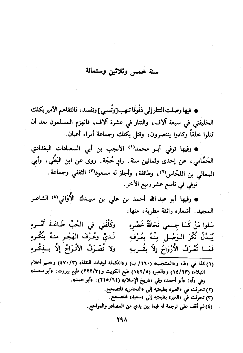 [1] كذا في «ط» و «المنتخب» (160/ ب) و «التكملة لوفيات النقلة» (3/ 470) و «سير أعلام النبلاء» (23/ 14) و «العبر» (5/ 142) طبع الكويت و (3/ 222) طبع بيروت: «أبو محمد» وفي «آ» : «أبو أحمد» وفي «تاريخ الإسلام» (64/ 215) : «أبو حمد» .