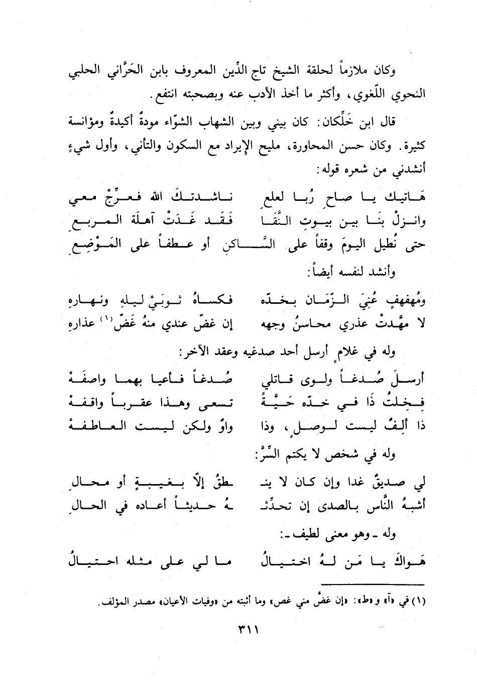 [1] في «آ» و «ط» : «إن غضّ مني غص» وما أثبته من «وفيات الأعيان» مصدر المؤلف.