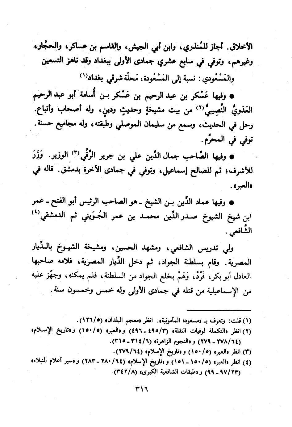 [4] انظر «العبر» (5/ 150- 151) و «تاريخ الإسلام» (64/ 280- 283) و «سير أعلام النبلاء» (23/ 97- 99) و «طبقات الشافعية الكبرى» (8/ 342) .