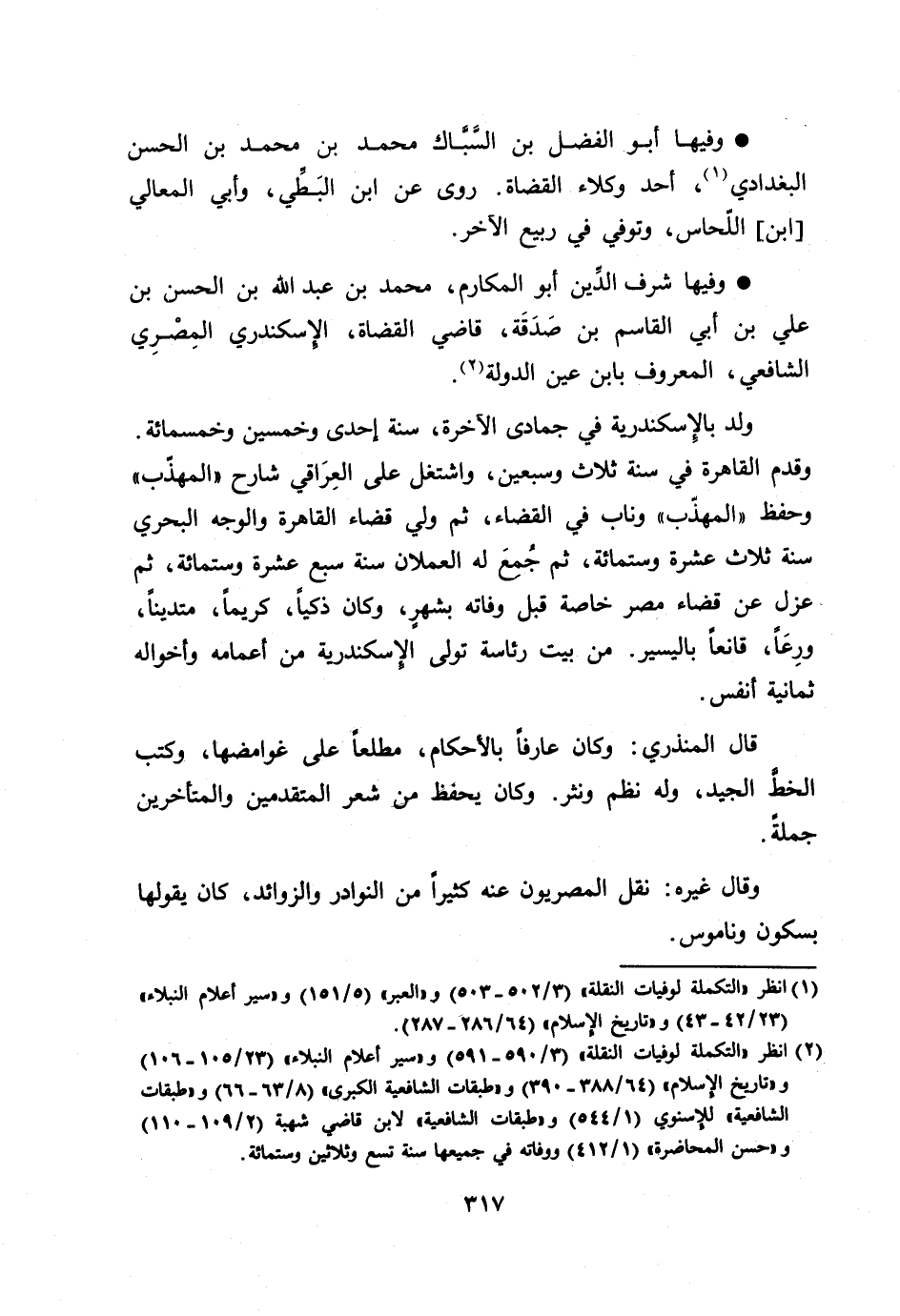 [2] انظر «التكملة لوفيات النقلة» (3/ 590- 591) و «سير أعلام النبلاء» (23/ 105- 106) و «تاريخ الإسلام» (64/ 388- 390) و «طبقات الشافعية الكبرى» (8/ 63- 66) و «طبقات الشافعية» للإسنوي (1/ 544) و «طبقات الشافعية» لابن قاضي شهبة (2/ 109- 110) و «حسن المحاضرة» (1/ 412) ووفاته في جميعها سنة تسع وثلاثين وستمائة.